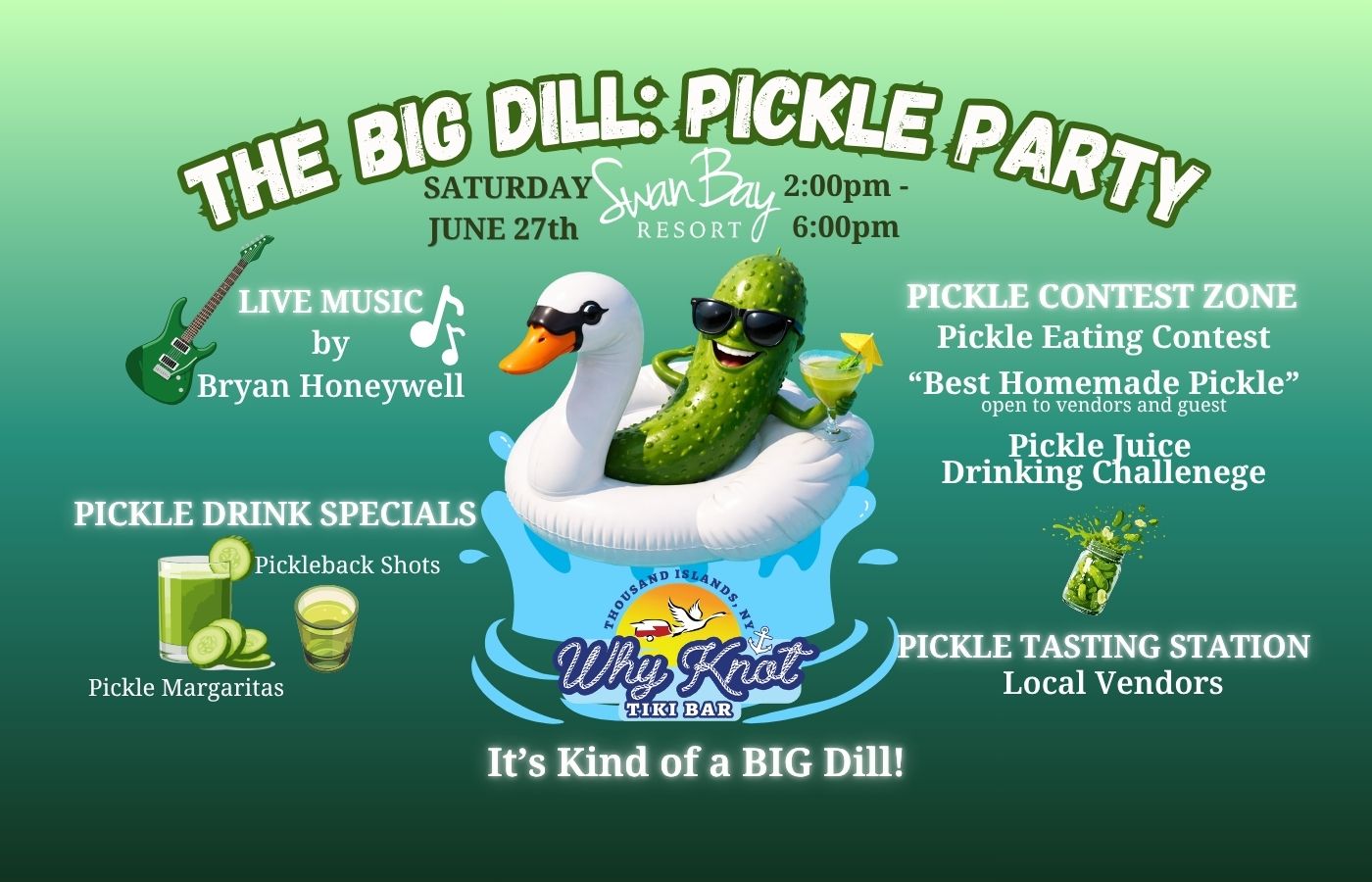 Swan Bay Resort’s famous poolside & waterfront Tiki Bar is a favorite amongst locals and visitors alike. We offer daily drink specials, weekly themed nights, and host live music in Alex Bay along the St. Lawrence River!