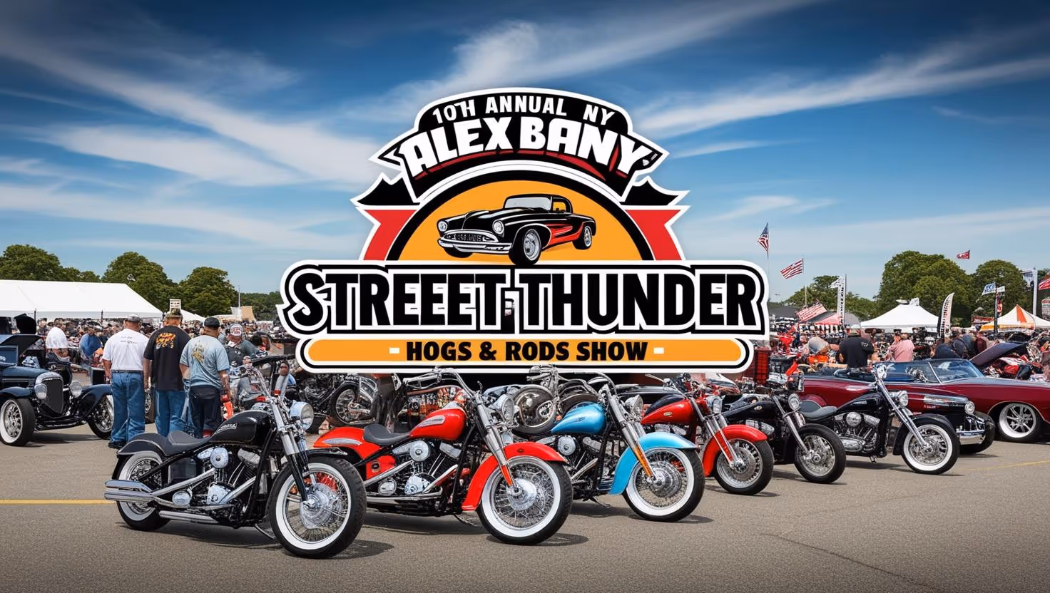 Join us for the 10th Annual Rollin’ Street Thunder – Hogs & Rods Show in Alexandria Bay on September 7, 2025! This classic cars and custom motorcycle show is a must-attend event. The day kicks off at 8:30 AM with $10 registration, followed by a 50s-themed celebration complete with music, a Loud Pipes & Muffler Contest at noon, and awards at 1 PM. Don’t miss this exciting day of vintage cars, custom bikes, and plenty of nostalgia! For more details, contact 315-771-1435 or 315-482-9531.