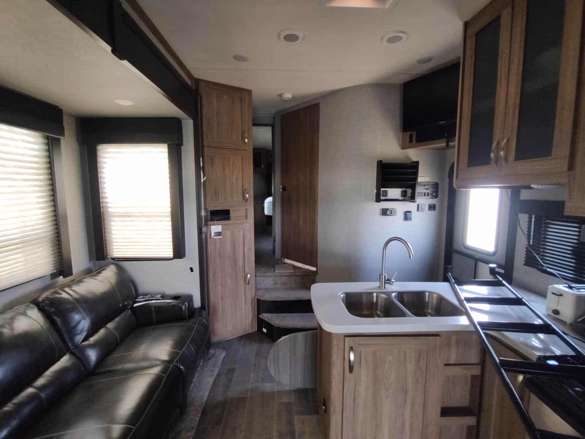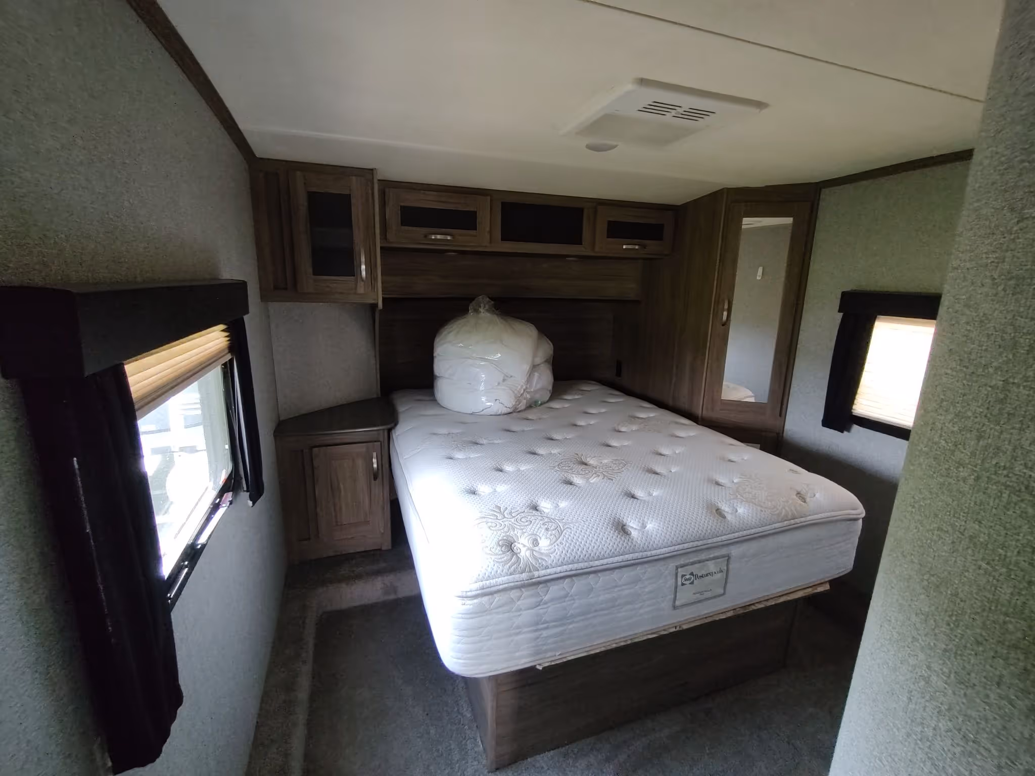- 30,000 BTU furnace, dual 15k A/C units with race-track ducting, and kitchen power vent