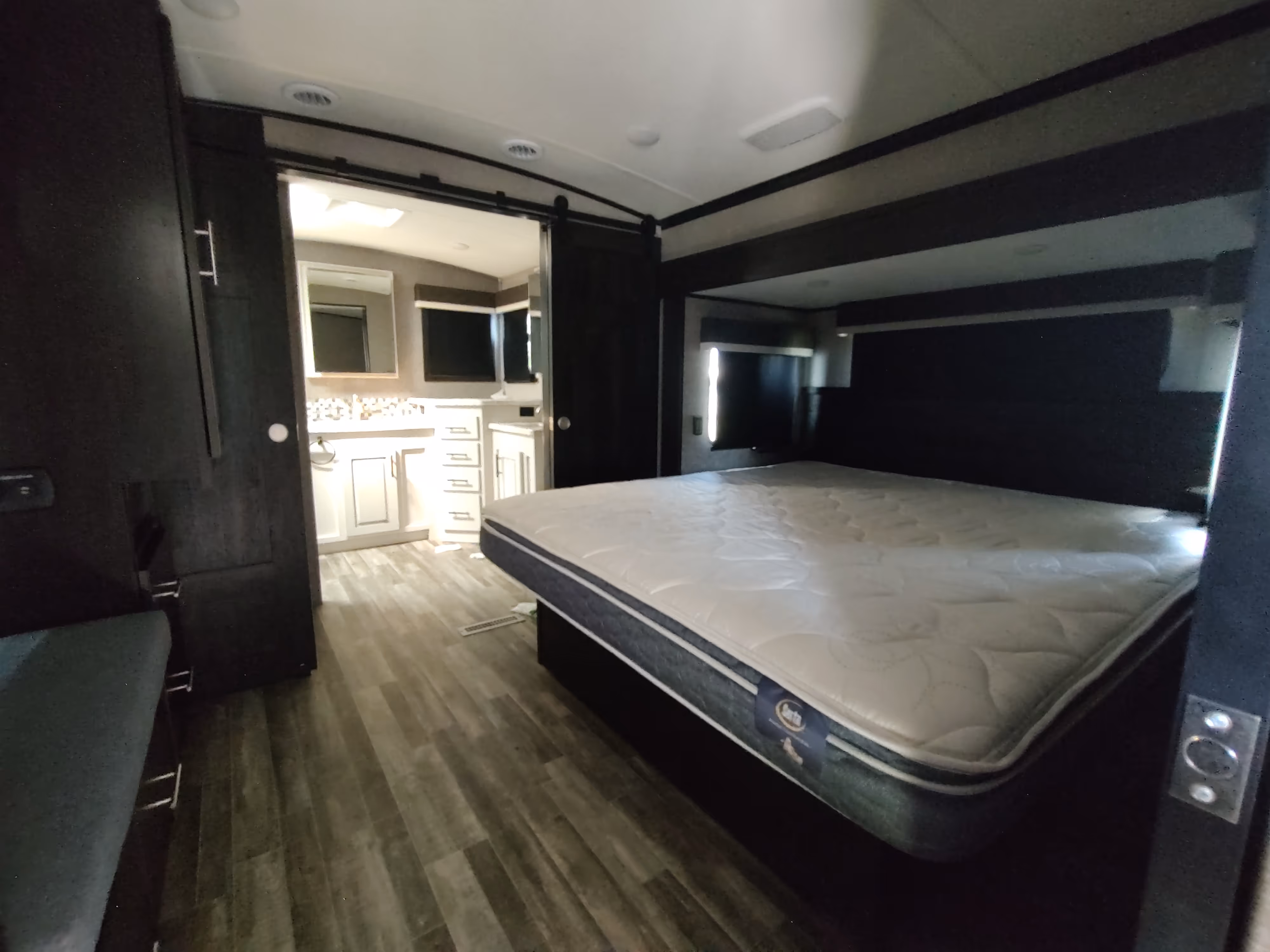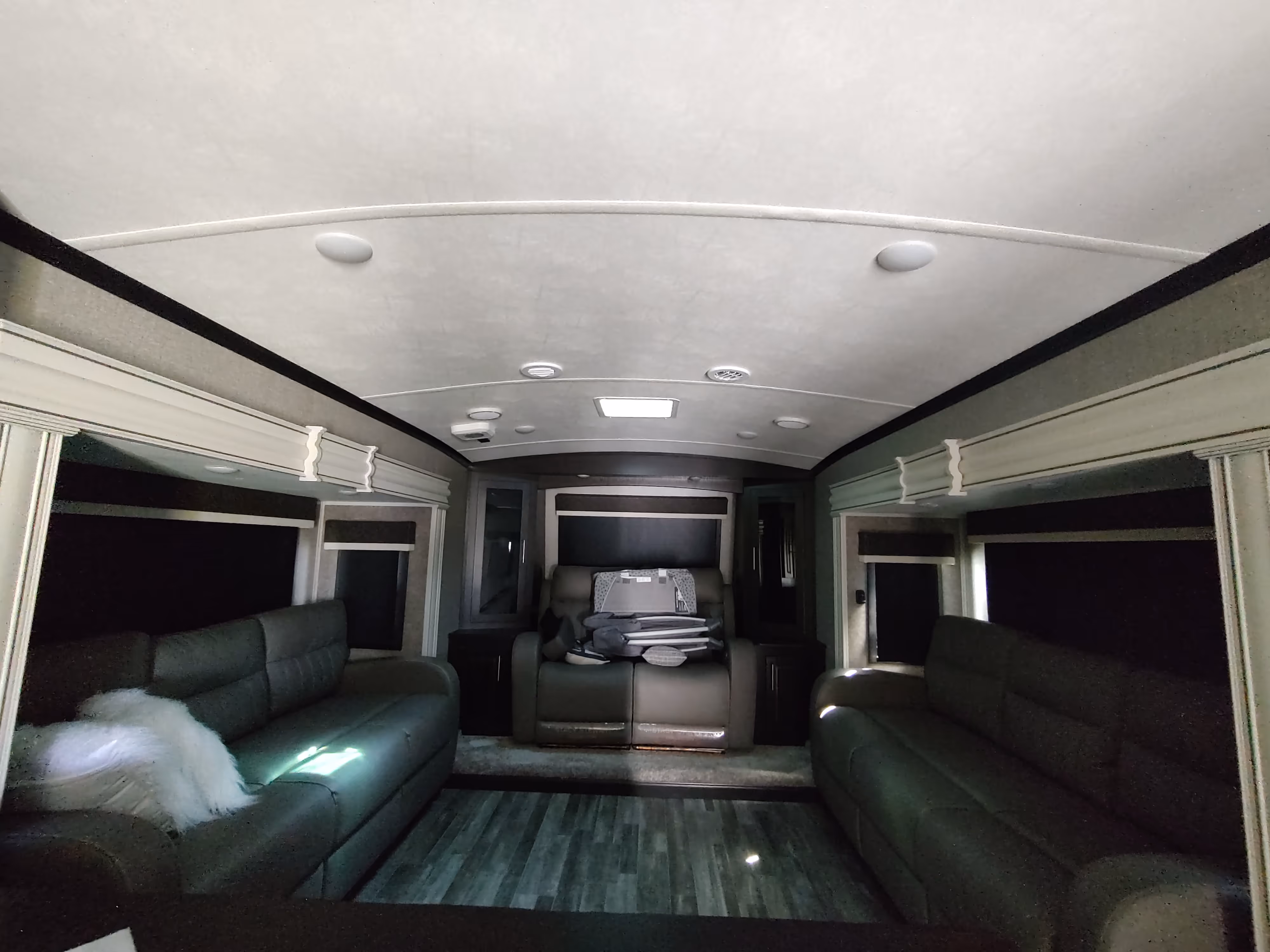 - Residential-style furniture with theater seating and a tri-fold hide-a-bed sofa
