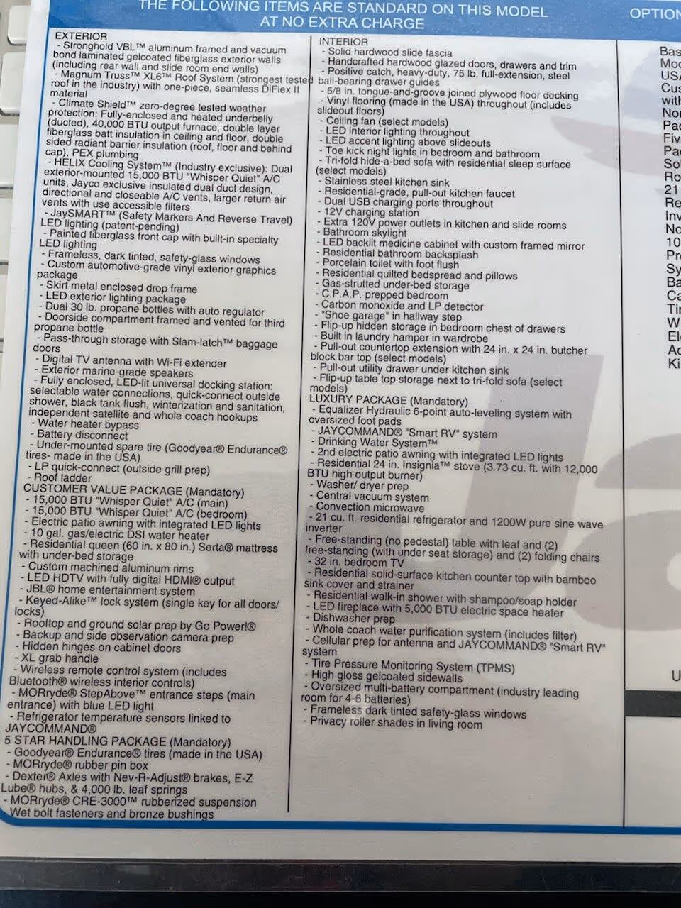 - Jayco’s Magnum Truss™ roof system – one of the strongest in the industry