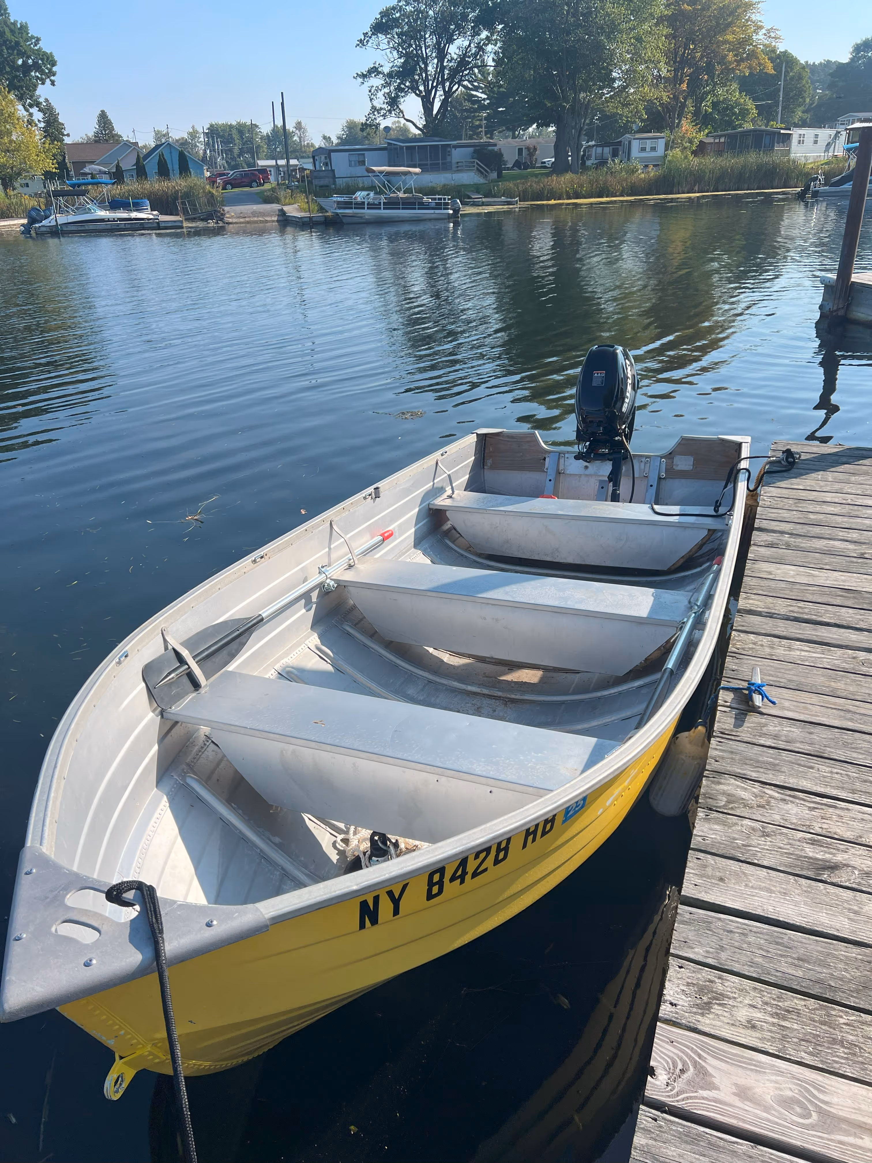 Looking for a fishing boat while visiting the 1000 Islands? This 16′ aluminum fishing boat is just what you’re looking for. Complete with all the necessary safety gear and a Suzuki Four Stroke 15 hp engine. Get out there and fish!